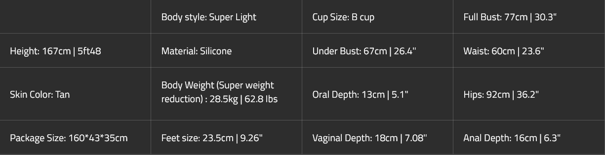 Each sex doll has an artificial stainless-multiplex-metal skeleton developed with the latest professional technology. Therefore, you can freely position each part of the body on the sex doll such as the legs, arms, hands, feet and head in any humanly possible position. It allows you to enjoy your sex doll in any sexual position. |