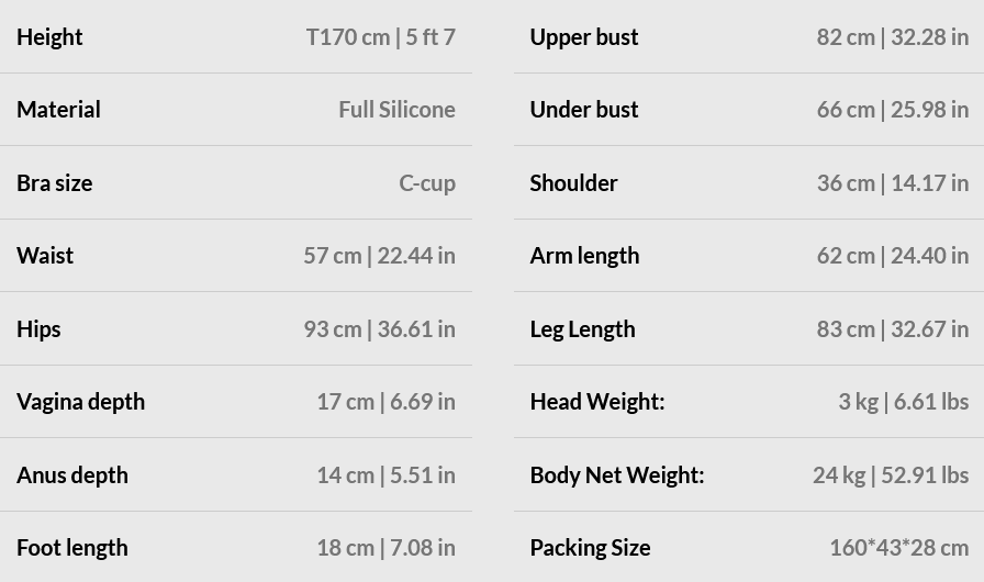 Each sex doll has an artificial stainless-multiplex-metal skeleton developed with the latest professional technology. Therefore, you can freely position each part of the body on the sex doll such as the legs, arms, hands, feet and head in any humanly possible position. It allows you to enjoy your sex doll in any sexual position. |